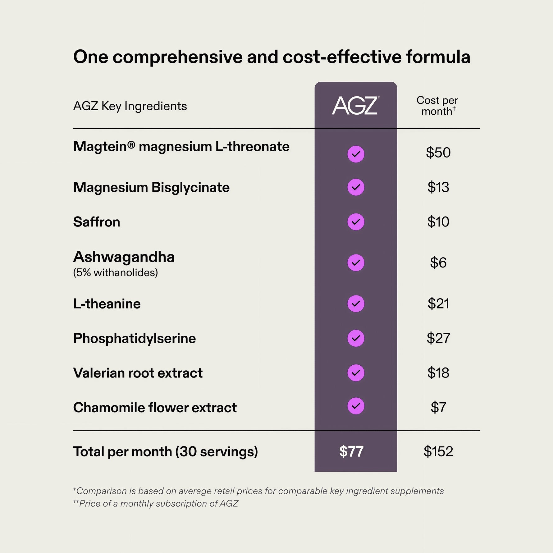 AGZ was formulated without melatonin. Instead, AGZ relies on key ingredients, including Magtein magnesium L-threonate and saffron, which play a key role in natural melatonin production.